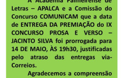 Na última sexta-feira, dia 11, o Governador Luciano Barbosa assinou o termo que renova a cessão do imóvel onde funciona a APALCA. http://www.agenciaalagoas.al.gov.br/noticia/item/11101-barbosa-renova-cessao-de-imovel-para-academia-de-letras-em-palmeira http://f5alagoas.com.br/editoria/cidades/governador-em-exercicio-luciano-barbosa-assina-renovacao-de-comodato-com-apalca/31/18707