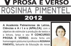 Torna-se necessário informar aos leitores das páginas deste site, que a 5ª edição do concurso literário promovido por nossa Academia é dedicada à emérita professora Rosa Eulália Pimentel (mais conhecida por Rosinha Pimentel), palmeirense ilustre que se dedicou exclusivamente ao exercício do magistério em nossa cidade, sendo também uma das Patronas Acadêmicas de nossa […]